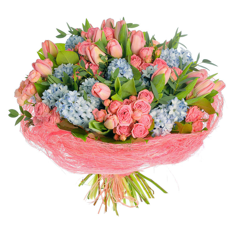 На фото представлен образец. Объем букета зависит от выбранного вами размера. Точное количество цветов и цветовую гамму вы можете уточнить у менеджера по телефону.