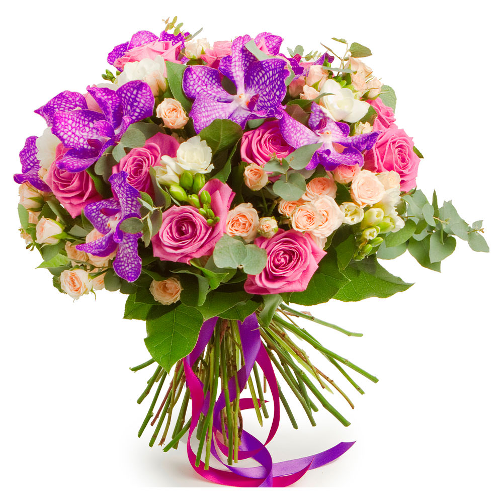 На фото представлен образец. Объем букета зависит от выбранного вами размера. Точное количество цветов и цветовую гамму вы можете уточнить у менеджера по телефону.
